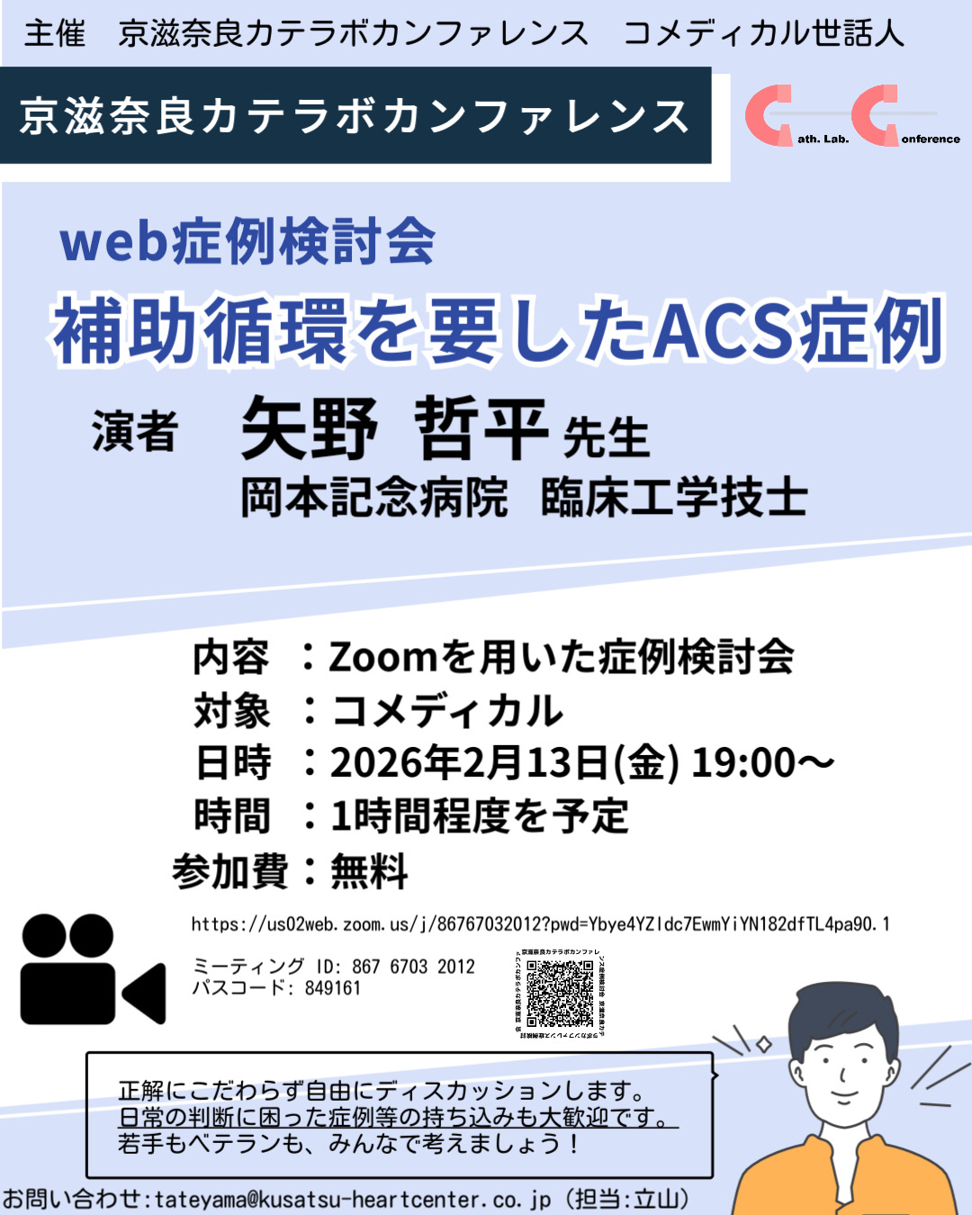 補助循環を要したACS症例をテーマに、Zoomを用いたコメディカル向けのWeb症例検討会を開催します。